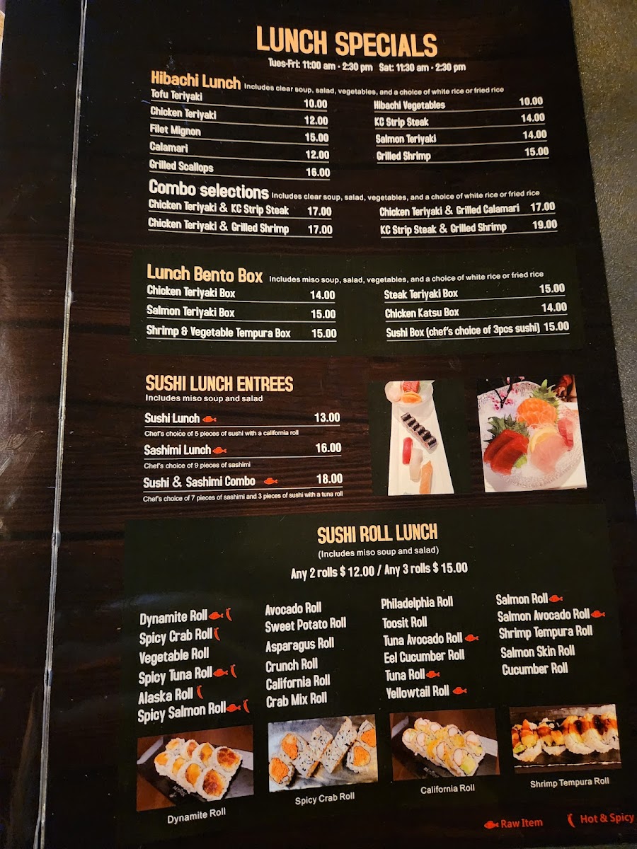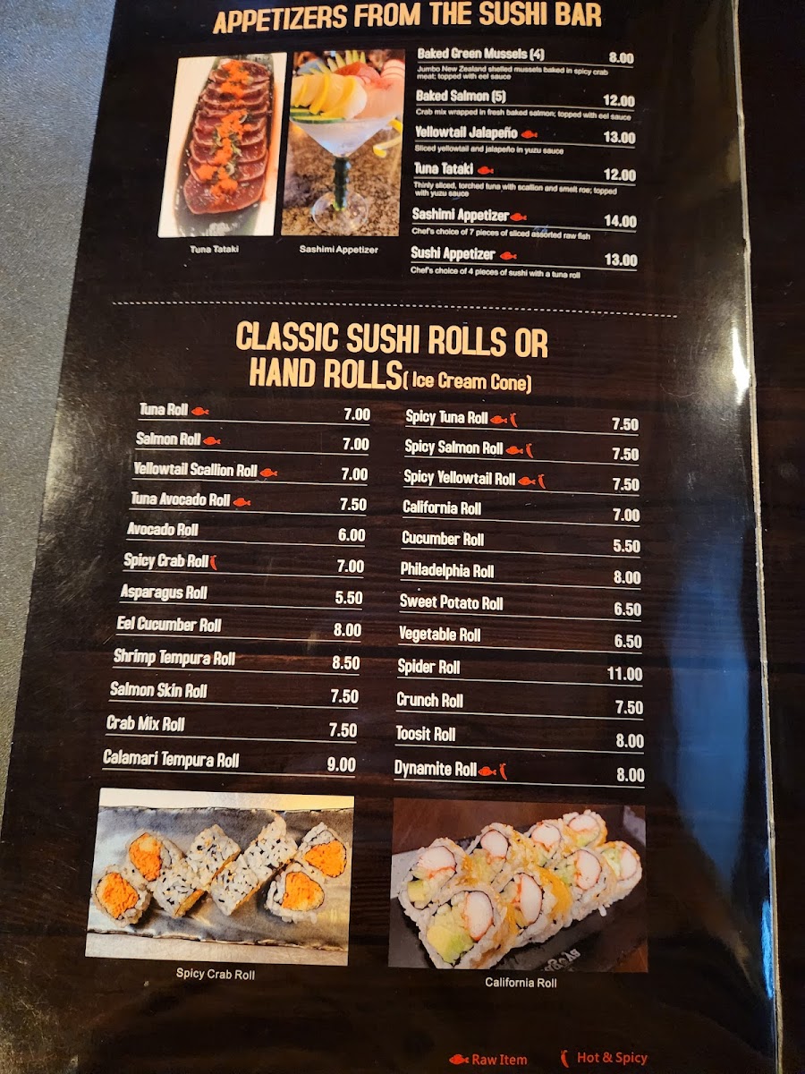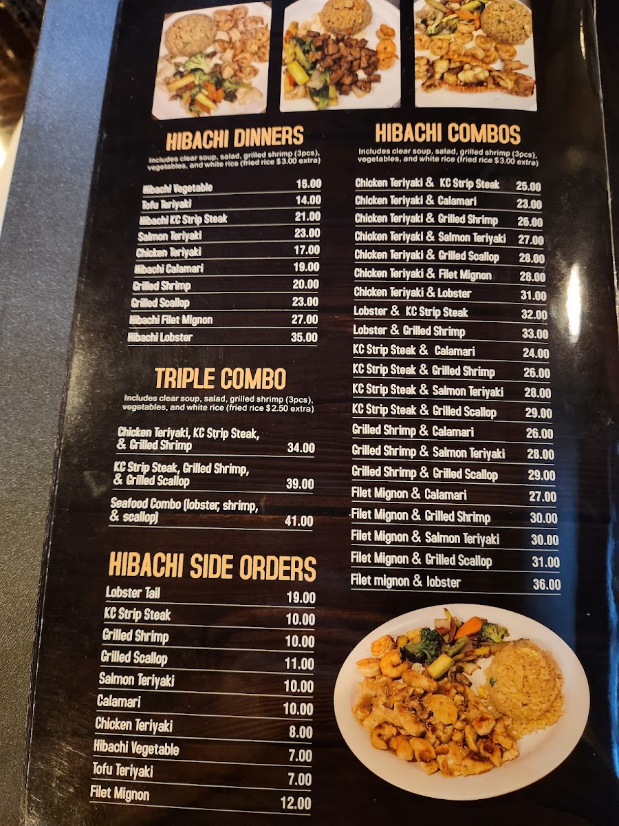 You’ll find classic favorites like Hibachi Teriyaki Chicken and Garlic Spiced Edamame alongside handcrafted sushi creations such as the Ottawa Roll and Spider Roll. The menu also features shareable appetizers like Crab Rangoon and side dishes ranging from Grilled Scallops to steamed rice, all designed to complement the main dishes without overwhelming the palate.